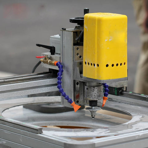 This sink hole cutting system can be used to cut sink holes of any shape. With proper templates, it can easily cut round, oval, and any odd-shaped sinkholes. It can easily cut square or rectangular sinkholes without any templates.